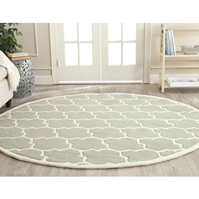 TRENDY STYLE: Contemporary rug design from the Safavieh Chatham Collection hand tufted in India beautifully enhances any room of the home, from the living room, dining room, bedroom, home office, or entryway. Available in many colors and sizes. HIGH QUALITY & DURABLE DESIGN: Woven of 100% Wool Pile this hand tufted area rug has a plush & comfortable 1.2 cm medium pile and is soft underfoot. STAIN RESISTANT & FAMILY-FRIENDLY: Beautifully hand tufted from artisans of the highest quality, soft and dense wool, this carpet is comfortable underfoot. Given the nature of the fibers, this rug is less susceptible to stains. EASY CARE & MAINTENANCE: Vacuum regularly and gently blot and clean stains immediately with a mild detergent or carpet cleaner, then rinse thoroughly and dry. Professional cleaning recommended for tough stains and dirt. THE BRAND: Safavieh has been a trusted brand and global leader in home & living for over 100 Years. Experts in making quality, durable, trendy designs, the brand mixes materials, colors and styles to create a collection of rugs, furniture and lights Construction Type: Hand Tufted; Materials 100% Wool Size: 152 X 152 cm; Colour: Grey / Ivory Vacuum regularly to prevent dust and crumbs from settling into the roots of the fibres. Avoid direct and continuous exposure to sunlight. Use rug protectors under the legs of heavy furniture to avoid flattening piles. Do not pull loose ends; clip them with scissors to remove. Turn carpet occasionally to equalize wear. Remove spills immediately. Professional cleaning is recommended.