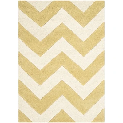 TRENDY STYLE: Contemporary rug design from the Safavieh Chatham Collection hand tufted in India beautifully enhances any room of the home, from the living room, dining room, bedroom, home office, or entryway. Available in many colors and sizes. HIGH QUALITY & DURABLE DESIGN: Woven of 100% Wool Pile this hand tufted area rug has a plush & comfortable 1.2 cm medium pile and is soft underfoot. STAIN RESISTANT & FAMILY-FRIENDLY: Beautifully hand tufted from artisans of the highest quality, soft and dense wool, this carpet is comfortable underfoot. Given the nature of the fibers, this rug is less susceptible to stains. EASY CARE & MAINTENANCE: Vacuum regularly and gently blot and clean stains immediately with a mild detergent or carpet cleaner, then rinse thoroughly and dry. Professional cleaning recommended for tough stains and dirt. THE BRAND: Safavieh has been a trusted brand and global leader in home & living for over 100 Years. Experts in making quality, durable, trendy designs, the brand mixes materials, colors and styles to create a collection of rugs, furniture and lights Construction Type: Hand Tufted; Materials 100% Wool Size: 60 X 91 cm; Colour: Light Gold / Ivory Vacuum regularly to prevent dust and crumbs from settling into the roots of the fibres. Avoid direct and continuous exposure to sunlight. Use rug protectors under the legs of heavy furniture to avoid flattening piles. Do not pull loose ends; clip them with scissors to remove. Turn carpet occasionally to equalize wear. Remove spills immediately. Professional cleaning is recommended.