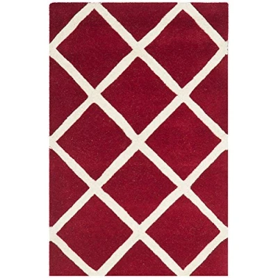 TRENDY STYLE: Contemporary rug design from the Safavieh Chatham Collection hand tufted in India beautifully enhances any room of the home, from the living room, dining room, bedroom, home office, or entryway. Available in many colors and sizes. HIGH QUALITY & DURABLE DESIGN: Woven of 100% Wool Pile this hand tufted area rug has a plush & comfortable 1.2 cm medium pile and is soft underfoot. STAIN RESISTANT & FAMILY-FRIENDLY: Beautifully hand tufted from artisans of the highest quality, soft and dense wool, this carpet is comfortable underfoot. Given the nature of the fibers, this rug is less susceptible to stains. EASY CARE & MAINTENANCE: Vacuum regularly and gently blot and clean stains immediately with a mild detergent or carpet cleaner, then rinse thoroughly and dry. Professional cleaning recommended for tough stains and dirt. THE BRAND: Safavieh has been a trusted brand and global leader in home & living for over 100 Years. Experts in making quality, durable, trendy designs, the brand mixes materials, colors and styles to create a collection of rugs, furniture and lights Construction Type: Hand Tufted; Materials 100% Wool Size: 121 X 182 cm; Colour: Red / Ivory Vacuum regularly to prevent dust and crumbs from settling into the roots of the fibres. Avoid direct and continuous exposure to sunlight. Use rug protectors under the legs of heavy furniture to avoid flattening piles. Do not pull loose ends; clip them with scissors to remove. Turn carpet occasionally to equalize wear. Remove spills immediately. Professional cleaning is recommended.