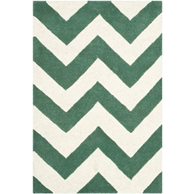 TRENDY STYLE: Contemporary rug design from the Safavieh Chatham Collection hand tufted in India beautifully enhances any room of the home, from the living room, dining room, bedroom, home office, or entryway. Available in many colors and sizes. HIGH QUALITY & DURABLE DESIGN: Woven of 100% Wool Pile this hand tufted area rug has a plush & comfortable 1.2 cm medium pile and is soft underfoot. STAIN RESISTANT & FAMILY-FRIENDLY: Beautifully hand tufted from artisans of the highest quality, soft and dense wool, this carpet is comfortable underfoot. Given the nature of the fibers, this rug is less susceptible to stains. EASY CARE & MAINTENANCE: Vacuum regularly and gently blot and clean stains immediately with a mild detergent or carpet cleaner, then rinse thoroughly and dry. Professional cleaning recommended for tough stains and dirt. THE BRAND: Safavieh has been a trusted brand and global leader in home & living for over 100 Years. Experts in making quality, durable, trendy designs, the brand mixes materials, colors and styles to create a collection of rugs, furniture and lights Construction Type: Hand Tufted; Materials 100% Wool Size: 60 X 91 cm; Colour: Teal / Ivory Vacuum regularly to prevent dust and crumbs from settling into the roots of the fibres. Avoid direct and continuous exposure to sunlight. Use rug protectors under the legs of heavy furniture to avoid flattening piles. Do not pull loose ends; clip them with scissors to remove. Turn carpet occasionally to equalize wear. Remove spills immediately. Professional cleaning is recommended.