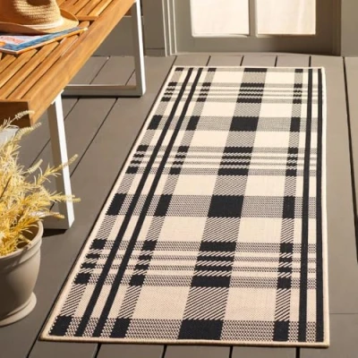 Safavieh Contemporary Rug for Living Room, Dining Bedroom, Courtyard Collection, Short Pile, in Black and Bone, 62 X 240 cm