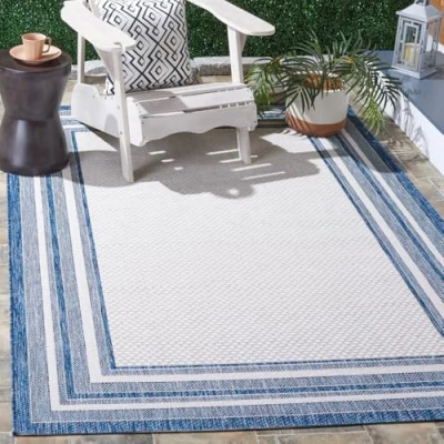 STAIN, WEATHER, & UV-: Expertly machine-woven from enhanced synthetic durable fibers that are stain, weather, and UV- and have a non-shedding 0.25-inch thick pile KID & PET-FRIENDLY: Safe for everyday indoor or outdoor high foot traffic and areas more prone to life’s unpredictable messes from kid or pet activity TRENDY STYLE: Design works beautifully in any room, including the patio, deck, kitchen, backyard, dining room, mudroom, playroom, living room, or entryway EASY MAINTENANCE & DURABLE: Stress-free cleaning includes regular vacuuming, and rinsing with a garden hose with soapy water and air drying; when not in use for outdoors, we recommend storing away TRUSTED BRAND: SAFAVIEH has been a trusted brand and leader in home furnishings for over 100 years, using their expertise in crafting trendy high-quality designs; begin your rug search with Safavieh and explore over 100,000 products today