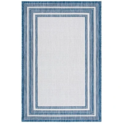 Safavieh Contemporary Rug for Living Room, Dining Bedroom, Courtyard Collection, Short Pile, in Ivory and Navy, 61 X 109 cm