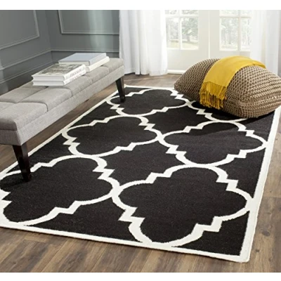 TRENDY STYLE: Contemporary rug design from the Safavieh Dhurrie Collection flatweave in India beautifully enhances any room of the home, from the living room, dining room, bedroom, home office, or entryway. Available in many colors and sizes. HIGH QUALITY & DURABLE DESIGN: Woven of 80% Wool / 20% Cotton this hand made area rug has a plush & comfortable 0.5 cm low pile and is soft underfoot. STAIN RESISTANT & FAMILY-FRIENDLY: Beautifully hand tufted from artisans of the highest quality, soft and dense wool, this carpet is comfortable underfoot. Given the nature of the fibers, this rug is less susceptible to stains. EASY CARE & MAINTENANCE: Vacuum regularly and gently blot and clean stains immediately with a mild detergent or carpet cleaner, then rinse thoroughly and dry. Professional cleaning recommended for tough stains and dirt. THE BRAND: Safavieh has been a trusted brand and global leader in home & living for over 100 Years. Experts in making quality, durable, trendy designs, the brand mixes materials, colors and styles to create a collection of rugs, furniture and lights Construction Type: Hand Woven Flat Weave; Materials Wool and Banana Silk Size: 121 X 182 cm; Colour: Black / Ivory Vacuum regularly to prevent dust and crumbs from settling into the roots of the fibres. Avoid direct and continuous exposure to sunlight. Use rug protectors under the legs of heavy furniture to avoid flattening piles. Do not pull loose ends; clip them with scissors to remove. Turn carpet occasionally to equalize wear. Remove spills immediately. Professional cleaning is recommended.