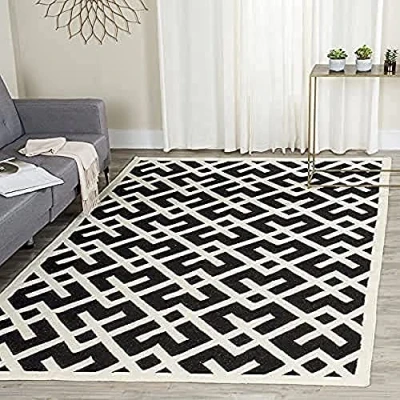 SAFAVIEH Contemporary Rug for Living Room, Dining Bedroom Dhurrie Collection, Short Pile, in Black and Ivory, 183 X 274 cm