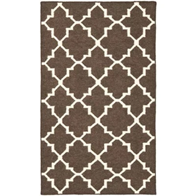 TRENDY STYLE: Contemporary rug design from the Safavieh Dhurrie Collection flatweave in India beautifully enhances any room of the home, from the living room, dining room, bedroom, home office, or entryway. Available in many colors and sizes. HIGH QUALITY & DURABLE DESIGN: Woven of 80% Wool / 20% Cotton this hand made area rug has a plush & comfortable 0.5 cm low pile and is soft underfoot. STAIN RESISTANT & FAMILY-FRIENDLY: Beautifully hand tufted from artisans of the highest quality, soft and dense wool, this carpet is comfortable underfoot. Given the nature of the fibers, this rug is less susceptible to stains. EASY CARE & MAINTENANCE: Vacuum regularly and gently blot and clean stains immediately with a mild detergent or carpet cleaner, then rinse thoroughly and dry. Professional cleaning recommended for tough stains and dirt. THE BRAND: Safavieh has been a trusted brand and global leader in home & living for over 100 Years. Experts in making quality, durable, trendy designs, the brand mixes materials, colors and styles to create a collection of rugs, furniture and lights Construction Type: Hand Woven Flat Weave; Materials 100% Wool Size: 91 X 152 cm; Colour: Brown / Ivory Vacuum regularly to prevent dust and crumbs from settling into the roots of the fibres. Avoid direct and continuous exposure to sunlight. Use rug protectors under the legs of heavy furniture to avoid flattening piles. Do not pull loose ends; clip them with scissors to remove. Turn carpet occasionally to equalize wear. Remove spills immediately. Professional cleaning is recommended.