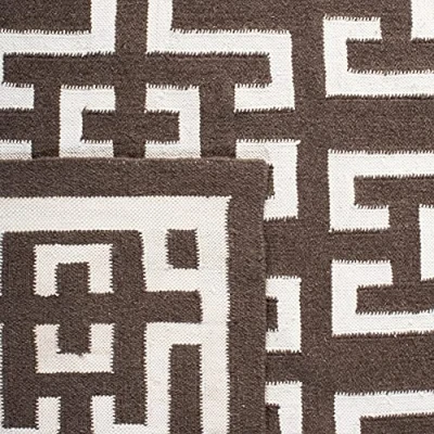SAFAVIEH Contemporary Rug for Living Room, Dining Bedroom Dhurrie Collection, Short Pile, in Chocolate and Ivory, 152 X 244 cm
