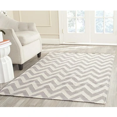 TRENDY STYLE: Contemporary rug design from the Safavieh Dhurrie Collection flatweave in India beautifully enhances any room of the home, from the living room, dining room, bedroom, home office, or entryway. Available in many colors and sizes. HIGH QUALITY & DURABLE DESIGN: Woven of 80% Wool / 20% Cotton this hand made area rug has a plush & comfortable 0.5 cm low pile and is soft underfoot. STAIN RESISTANT & FAMILY-FRIENDLY: Beautifully hand tufted from artisans of the highest quality, soft and dense wool, this carpet is comfortable underfoot. Given the nature of the fibers, this rug is less susceptible to stains. EASY CARE & MAINTENANCE: Vacuum regularly and gently blot and clean stains immediately with a mild detergent or carpet cleaner, then rinse thoroughly and dry. Professional cleaning recommended for tough stains and dirt. THE BRAND: Safavieh has been a trusted brand and global leader in home & living for over 100 Years. Experts in making quality, durable, trendy designs, the brand mixes materials, colors and styles to create a collection of rugs, furniture and lights Construction Type: Hand Woven Flat Weave; Materials 100% Wool Size: 121 X 182 cm; Colour: Grey / Ivory Vacuum regularly to prevent dust and crumbs from settling into the roots of the fibres. Avoid direct and continuous exposure to sunlight. Use rug protectors under the legs of heavy furniture to avoid flattening piles. Do not pull loose ends; clip them with scissors to remove. Turn carpet occasionally to equalize wear. Remove spills immediately. Professional cleaning is recommended.