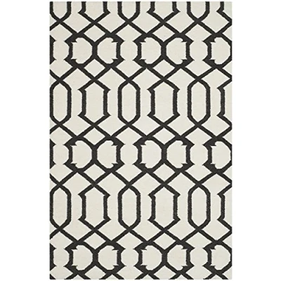 TRENDY STYLE: Contemporary rug design from the Safavieh Dhurrie Collection flatweave in India beautifully enhances any room of the home, from the living room, dining room, bedroom, home office, or entryway. Available in many colors and sizes. HIGH QUALITY & DURABLE DESIGN: Woven of Wool this hand made area rug has a plush & comfortable 0.5 cm low pile and is soft underfoot. STAIN RESISTANT & FAMILY-FRIENDLY: Beautifully hand tufted from artisans of the highest quality, soft and dense wool, this carpet is comfortable underfoot. Given the nature of the fibers, this rug is less susceptible to stains. EASY CARE & MAINTENANCE: Vacuum regularly and gently blot and clean stains immediately with a mild detergent or carpet cleaner, then rinse thoroughly and dry. Professional cleaning recommended for tough stains and dirt. THE BRAND: Safavieh has been a trusted brand and global leader in home & living for over 100 Years. Experts in making quality, durable, trendy designs, the brand mixes materials, colors and styles to create a collection of rugs, furniture and lights Construction Type: Hand Woven Flat Weave; Materials 100% Wool Size: 91 X 152 cm; Colour: Ivory / Charcoal Vacuum regularly to prevent dust and crumbs from settling into the roots of the fibres. Avoid direct and continuous exposure to sunlight. Use rug protectors under the legs of heavy furniture to avoid flattening piles. Do not pull loose ends; clip them with scissors to remove. Turn carpet occasionally to equalize wear. Remove spills immediately. Professional cleaning is recommended.