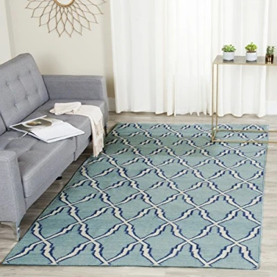 TRENDY STYLE: Contemporary rug design from the Safavieh Dhurrie Collection flatweave in India beautifully enhances any room of the home, from the living room, dining room, bedroom, home office, or entryway. Available in many colors and sizes. HIGH QUALITY & DURABLE DESIGN: Woven of 80% Wool / 20% Cotton this hand made area rug has a plush & comfortable 0.5 cm low pile and is soft underfoot. STAIN RESISTANT & FAMILY-FRIENDLY: Beautifully hand tufted from artisans of the highest quality, soft and dense wool, this carpet is comfortable underfoot. Given the nature of the fibers, this rug is less susceptible to stains. EASY CARE & MAINTENANCE: Vacuum regularly and gently blot and clean stains immediately with a mild detergent or carpet cleaner, then rinse thoroughly and dry. Professional cleaning recommended for tough stains and dirt. THE BRAND: Safavieh has been a trusted brand and global leader in home & living for over 100 Years. Experts in making quality, durable, trendy designs, the brand mixes materials, colors and styles to create a collection of rugs, furniture and lights Construction Type: Hand Woven Flat Weave; Materials 100% Wool Size: 182 X 274 cm; Colour: Light Blue / Ivory Vacuum regularly to prevent dust and crumbs from settling into the roots of the fibres. Avoid direct and continuous exposure to sunlight. Use rug protectors under the legs of heavy furniture to avoid flattening piles. Do not pull loose ends; clip them with scissors to remove. Turn carpet occasionally to equalize wear. Remove spills immediately. Professional cleaning is recommended.