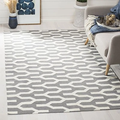 TRENDY STYLE: Contemporary rug design from the Safavieh Dhurrie Collection flatweave in India beautifully enhances any room of the home, from the living room, dining room, bedroom, home office, or entryway. Available in many colors and sizes. HIGH QUALITY & DURABLE DESIGN: Woven of 80% Wool / 20% Cotton this hand made area rug has a plush & comfortable 0.5 cm low pile and is soft underfoot. STAIN RESISTANT & FAMILY-FRIENDLY: Beautifully hand tufted from artisans of the highest quality, soft and dense wool, this carpet is comfortable underfoot. Given the nature of the fibers, this rug is less susceptible to stains. EASY CARE & MAINTENANCE: Vacuum regularly and gently blot and clean stains immediately with a mild detergent or carpet cleaner, then rinse thoroughly and dry. Professional cleaning recommended for tough stains and dirt. THE BRAND: Safavieh has been a trusted brand and global leader in home & living for over 100 Years. Experts in making quality, durable, trendy designs, the brand mixes materials, colors and styles to create a collection of rugs, furniture and lights Construction Type: Hand Woven Flat Weave; Materials Wool and Banana Silk Size: 121 X 182 cm; Colour: Silver / Ivory Vacuum regularly to prevent dust and crumbs from settling into the roots of the fibres. Avoid direct and continuous exposure to sunlight. Use rug protectors under the legs of heavy furniture to avoid flattening piles. Do not pull loose ends; clip them with scissors to remove. Turn carpet occasionally to equalize wear. Remove spills immediately. Professional cleaning is recommended.