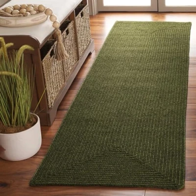 Safavieh Contemporary Rug Living Room, Dining Bedroom Machine Washable and Reversable Braided Collection, Short Pile, in Green, 62 X 240 cm