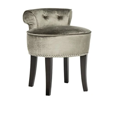 Safavieh Upholstered Vanity Stool. Perfect for the Bedroom and easily multitasks as an ottoman in the Living Room, Dining Room, Family Room, Den, Library or Study/Office. Color: Deep Sage ; Product Dimensions: 48.26 X 45.466 X 57.912 cm Wood Content: Birchwood ; Upholstery Content: 60% Cotton & 40% Viscose Assembly Required: No ; Country of Origin: China To prevent overall soiling, frequent vacuuming or light brushing is recommended. Spot clean, using a mild water-free solvent or dry cleaning product. Only a professional cleaner should undertake a complete overall cleaning. The use of steam or water-based cleaners may cause excessive shrinking or staining. Dust regularly with a soft, dry cloth. Never use oiled or treated cloths on lacquered finishes. Some finishes can be wiped with a damp (not wet) cloth, followed at once by rubbing with a dry cloth to remove fingerprints and smudges. For persistent spots, gently clean with a soft cloth and a solution of water and mild soap, make sure to wipe dry.