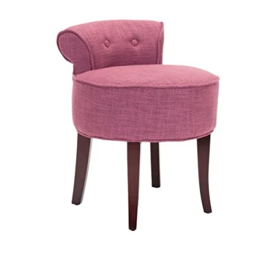Safavieh Upholstered Vanity Stool. Perfect for the Bedroom and easily multitasks as an ottoman in the Living Room, Dining Room, Family Room, Den, Library or Study/Office. Color: Rose ; Product Dimensions: 48.26 X 45.466 X 57.912 cm Wood Content: Birchwood ; Upholstery Content: 65% Viscose & 35% Polyester Assembly Required: No ; Country of Origin: China To prevent overall soiling, frequent vacuuming or light brushing is recommended. Spot clean, using a mild water-free solvent or dry cleaning product. Only a professional cleaner should undertake a complete overall cleaning. The use of steam or water-based cleaners may cause excessive shrinking or staining. Dust regularly with a soft, dry cloth. Never use oiled or treated cloths on lacquered finishes. Some finishes can be wiped with a damp (not wet) cloth, followed at once by rubbing with a dry cloth to remove fingerprints and smudges. For persistent spots, gently clean with a soft cloth and a solution of water and mild soap, make sure to wipe dry.