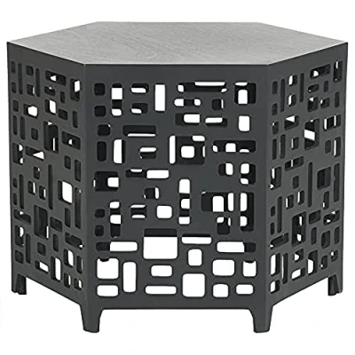 Safavieh Hexagon End Table. Perfect for the Living Room, Dining Room, Family Room, Den, Library or Study/Office. Color: Charcoal Grey ; Product Dimensions: 58 X 30 X 44.45 cm Wood Content: Bayur Wood Assembly Required: No ; Country of Origin: Indonesia Wood is a natural material with variations of color shade, configuration, streaks, and grain structure. Each individual piece of Safavieh furniture has characteristic markings that will differ from photo and showroom samples. Regular attention and maintenance of fine furniture can ensure its beauty for years to come. Always use felt pads under all articles to prevent discoloration or softening of any lacquer surfaces such as hardwood floors or tiles. Plastic and rubber bases on items can discolor wood. Frequently dust with a clean, lint-free cloth or feather duster. Avoid the use of chemicals and household cleaners as they may damage the finish.