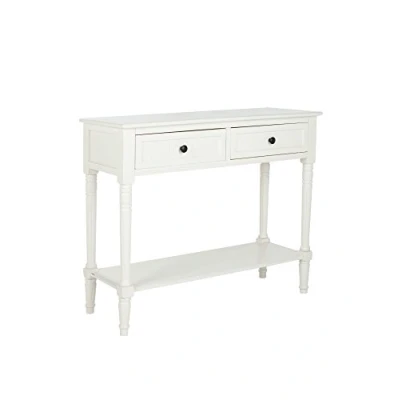 Safavieh Wooden Console. Perfect for the Living Room, Dining Room, Family Room, Den, Library or Study/Office. Color: Distressed Cream ; Product Dimensions: 35.052 X 90.932 X 74.93 cm Wood Content: Pine Wood Assembly Required: Yes ; Country of Origin: China Wood is a natural material with variations of color shade, configuration, streaks, and grain structure. Each individual piece of Safavieh furniture has characteristic markings that will differ from photo and showroom samples. Regular attention and maintenance of fine furniture can ensure its beauty for years to come. Always use felt pads under all articles to prevent discoloration or softening of any lacquer surfaces such as hardwood floors or tiles. Plastic and rubber bases on items can discolor wood. Frequently dust with a clean, lint-free cloth or feather duster. Avoid the use of chemicals and household cleaners as they may damage the finish.