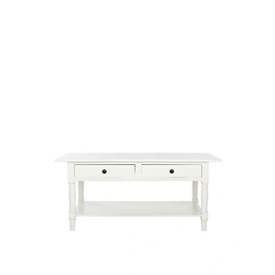 Safavieh Wooden Coffee Table. Perfect for the Living Room, Dining Room, Family Room, Den, Library or Study/Office. Color: Distressed Cream ; Product Dimensions: 105 X 55 X 46.99 cm Wood Content: Pine Wood Assembly Required: Yes ; Country of Origin: China Wood is a natural material with variations of color shade, configuration, streaks, and grain structure. Each individual piece of Safavieh furniture has characteristic markings that will differ from photo and showroom samples. Regular attention and maintenance of fine furniture can ensure its beauty for years to come. Always use felt pads under all articles to prevent discoloration or softening of any lacquer surfaces such as hardwood floors or tiles. Plastic and rubber bases on items can discolor wood. Frequently dust with a clean, lint-free cloth or feather duster. Avoid the use of chemicals and household cleaners as they may damage the finish.