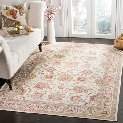 TRENDY STYLE: Old World Persian rug design from the Safavieh Sevilla Collection woven in Belgium beautifully enhances any room of the home, from the living room, dining room, bedroom, home office, or entryway. Available in many colors and sizes. HIGH QUALITY & DURABLE DESIGN: Woven of Viscose this machine made area rug has a plush & comfortable 0.6 cm low pile and is soft underfoot. STAIN RESISTANT & FAMILY-FRIENDLY: Expertly woven from enhanced soft synthetic durable fibers that are stain resistant and non-shedding, the rug doesn't trap dirt or debris making it pet-friendly and easy to clean. Perfect for high traffic areas. EASY CARE & MAINTENANCE: Vacuum regularly and gently blot and clean stains immediately with a mild detergent or carpet cleaner, then rinse thoroughly and dry. Professional cleaning recommended for tough stains and dirt. THE BRAND: Safavieh has been a trusted brand and global leader in home & living for over 100 Years. Experts in making quality, durable, trendy designs, the brand mixes materials, colors and styles to create a collection of rugs, furniture and lights Construction Type: Power Loomed; Materials 100% Viscose Size: 160 X 228 cm; Colour: Ivory / Multi Vacuum regularly to prevent dust and crumbs from settling into the roots of the fibres. Avoid direct and continuous exposure to sunlight. Use rug protectors under the legs of heavy furniture to avoid flattening piles. Do not pull loose ends; clip them with scissors to remove. Turn carpet occasionally to equalize wear. Remove spills immediately. Professional cleaning is recommended.