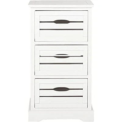Safavieh Wooden Three-Drawer Cabinet. Perfect for the Living Room, Dining Room, Family Room, Den, Library or Study/Office. Color: Distressed Cream ; Product Dimensions: 41 X 32 X 74.93 cm Wood Content: Pine Wood Assembly Required: No ; Country of Origin: China Wood is a natural material with variations of color shade, configuration, streaks, and grain structure. Each individual piece of Safavieh furniture has characteristic markings that will differ from photo and showroom samples. Regular attention and maintenance of fine furniture can ensure its beauty for years to come. Always use felt pads under all articles to prevent discoloration or softening of any lacquer surfaces such as hardwood floors or tiles. Plastic and rubber bases on items can discolor wood. Frequently dust with a clean, lint-free cloth or feather duster. Avoid the use of chemicals and household cleaners as they may damage the finish.