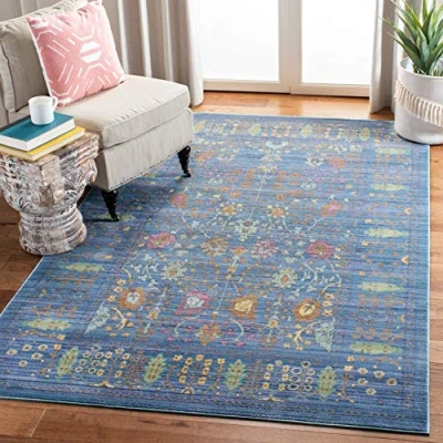 SAFAVIEH Craft Art Inspired Rug for Living Room, Dining Bedroom Valencia Collection, Short Pile, in Blue and Multi, 122 X 183 cm