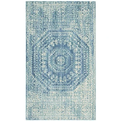 TRENDY STYLE: Craft Art-Inspired rug design from the Safavieh Valencia Collection woven in Turkey beautifully enhances any room of the home, from the living room, dining room, bedroom, home office, or entryway. Available in many colors and sizes. HIGH QUALITY & DURABLE DESIGN: Woven of 100% Polyester Pile this machine made area rug has a plush & comfortable 0.6 cm low pile and is soft underfoot. STAIN RESISTANT & FAMILY-FRIENDLY: Expertly woven from enhanced soft synthetic durable fibers that are stain resistant and non-shedding, the rug doesn't trap dirt or debris making it pet-friendly and easy to clean. Perfect for high traffic areas. EASY CARE & MAINTENANCE: Vacuum regularly and gently blot and clean stains immediately with a mild detergent or carpet cleaner, then rinse thoroughly and dry. Professional cleaning recommended for tough stains and dirt. THE BRAND: Safavieh has been a trusted brand and global leader in home & living for over 100 Years. Experts in making quality, durable, trendy designs, the brand mixes materials, colors and styles to create a collection of rugs, furniture and lights Construction Type: Power Loomed; Materials 100% Polyester Size: 91 X 152 cm; Colour: Blue / Multi Vacuum regularly to prevent dust and crumbs from settling into the roots of the fibres. Avoid direct and continuous exposure to sunlight. Use rug protectors under the legs of heavy furniture to avoid flattening piles. Do not pull loose ends; clip them with scissors to remove. Turn carpet occasionally to equalize wear. Remove spills immediately. Professional cleaning is recommended.