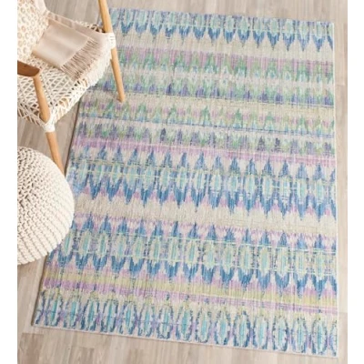 TRENDY STYLE: Craft Art-Inspired rug design from the Safavieh Valencia Collection woven in Turkey beautifully enhances any room of the home, from the living room, dining room, bedroom, home office, or entryway. Available in many colors and sizes. HIGH QUALITY & DURABLE DESIGN: Woven of 100% Polyester Pile this machine made area rug has a plush & comfortable 0.6 cm low pile and is soft underfoot. STAIN RESISTANT & FAMILY-FRIENDLY: Expertly woven from enhanced soft synthetic durable fibers that are stain resistant and non-shedding, the rug doesn't trap dirt or debris making it pet-friendly and easy to clean. Perfect for high traffic areas. EASY CARE & MAINTENANCE: Vacuum regularly and gently blot and clean stains immediately with a mild detergent or carpet cleaner, then rinse thoroughly and dry. Professional cleaning recommended for tough stains and dirt. THE BRAND: Safavieh has been a trusted brand and global leader in home & living for over 100 Years. Experts in making quality, durable, trendy designs, the brand mixes materials, colors and styles to create a collection of rugs, furniture and lights Construction Type: Power Loomed; Materials 100% Polyester Size: 121 X 182 cm; Colour: Purple / Multi Vacuum regularly to prevent dust and crumbs from settling into the roots of the fibres. Avoid direct and continuous exposure to sunlight. Use rug protectors under the legs of heavy furniture to avoid flattening piles. Do not pull loose ends; clip them with scissors to remove. Turn carpet occasionally to equalize wear. Remove spills immediately. Professional cleaning is recommended.
