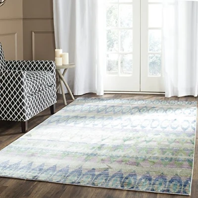TRENDY STYLE: Craft Art-Inspired rug design from the Safavieh Valencia Collection woven in Turkey beautifully enhances any room of the home, from the living room, dining room, bedroom, home office, or entryway. Available in many colors and sizes. HIGH QUALITY & DURABLE DESIGN: Woven of 100% Polyester Pile this machine made area rug has a plush & comfortable 0.6 cm low pile and is soft underfoot. STAIN RESISTANT & FAMILY-FRIENDLY: Expertly woven from enhanced soft synthetic durable fibers that are stain resistant and non-shedding, the rug doesn't trap dirt or debris making it pet-friendly and easy to clean. Perfect for high traffic areas. EASY CARE & MAINTENANCE: Vacuum regularly and gently blot and clean stains immediately with a mild detergent or carpet cleaner, then rinse thoroughly and dry. Professional cleaning recommended for tough stains and dirt. THE BRAND: Safavieh has been a trusted brand and global leader in home & living for over 100 Years. Experts in making quality, durable, trendy designs, the brand mixes materials, colors and styles to create a collection of rugs, furniture and lights Construction Type: Power Loomed; Materials 100% Polyester Size: 152 X 243 cm; Colour: Purple / Multi Vacuum regularly to prevent dust and crumbs from settling into the roots of the fibres. Avoid direct and continuous exposure to sunlight. Use rug protectors under the legs of heavy furniture to avoid flattening piles. Do not pull loose ends; clip them with scissors to remove. Turn carpet occasionally to equalize wear. Remove spills immediately. Professional cleaning is recommended.