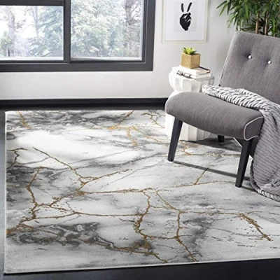 Safavieh Craft Collection Contemporary Area Rug for Living Room, Dining Bedroom, Short Pile Rug, Grey and Gold, 4' x 6' (122 183 cm)