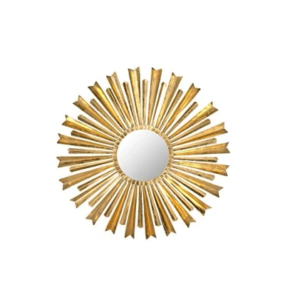Safavieh Sunburst Wall Iron Mirror. The Perfect Finishing Touch for the Living Room, Dining Room, Family Room, Entryway or Study/Office. Acts As An Accent Piece, Focal Point or Functional Décor. Color: Antique Gold ; Product Dimensions: 2 X 83 X 83.82 cm Wood Content: Medium-density fibreboard Assembly Required: No ; Country of Origin: India Blot spills immediately. Maintain with regular dusting and wipe with mild soap and water, dry thoroughly and do not use brass cleaners or abrasive household chemicals to avoid damage to the finish. For a natural streak-free shine, use a soft lint-free cloth and a small amount of 1:1 ratio white vinegar and water to clean. Non-streaking glass cleaners may also be used.