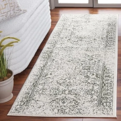 Safavieh Distressed Rug for Living Room, Dining Bedroom, Adirondack Collection, Short Pile, in Ivory and Green, 76 X 244 cm