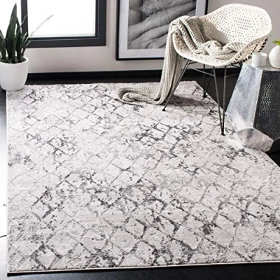 TRENDY STYLE: Modern Trellis Distressed rug design from the Safavieh Amelia Collection woven in Turkey beautifully enhances any room of the home, from the living room, dining room, bedroom, home office, or entryway; available in many colors and sizes OPTIMAL QUALITY & DURABLE DESIGN: Woven of 75% Polypropylene / 25% Shrink Polyester this machine made area rug has a plush & comfortable 1.1 cm low pile and is soft underfoot STAIN RESISTANT & FAMILY-FRIENDLY: Expertly woven from enhanced soft synthetic durable fibers that are stain resistant and non-shedding, the rug doesn't trap dirt or debris making it pet-friendly and easy to clean; optimal for high traffic areas EASY CARE & MAINTENANCE: Stress-free cleaning includes regular vacuuming (without a beater bar) and gently blotting out minor stains with a mild detergent or carpet cleaner; professional cleaning recommended for tough stains and dirt TRUSTED BRAND: SAFAVIEH has been a trusted brand and leader in home furnishings for over 100 years, using their specialty and expertise in crafting the trendiest and optimal qualitydesigns and selection of colors; begin your rug search with SAFAVIEH and explore over 100,000 products today