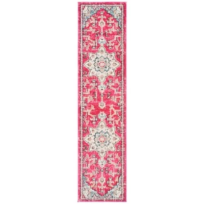 Safavieh Distressed Rug for Living Room Dining Bedroom Madison Collection Short Pile Fuchsia and Blue 67 x 122 cm