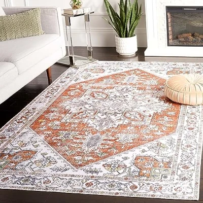 [TRENDY STYLE]:The design beautifully upgrades any space, from the living room, bedroom, dining room, study, kids room, dorm room, nursery or playroom [CHILDREN'S APPROVED AND PET FRIENDLY]: Safe for everyday indoor use with high pedestrian traffic and areas more prone to unpredictable mess caused by children's or pet activities [STAIN AND NON SLIP RESISTANT]: Expertly machine woven from upgraded synthetic, durable fibers that are stain and non slip and have a virtually lint-free, smooth pile Machine washable and durable: stress-free cleaning includes regular vacuuming and gently removing minor stains with a mild detergent or carpet cleaner. Machine wash in cold water (do not use bleach); it is recommended to line dry. Use a pure air drying cycle; larger rugs may need to be washed in a front loading machine the size of a commercial laundromat Trusted brand: SAFAVIEH has been a trusted brand and leader in home textiles for over 100 years. They use their specialty and expertise to develop the trendiest and highest quality designs and colors; start your rug search with SAFAVIEH and discover over 100,000 products today