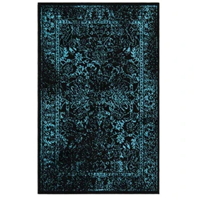 Safavieh Distressed Vintage Rug for Living Room, Dining Bedroom Adirondack Collection, Short Pile, in Black and Teal, 91 X 152 cm