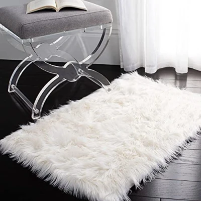TRENDY STYLE: Faux Sheepskin rug design from the Safavieh Faux Fur Collection woven in China beautifully enhances any room of the home, from the living room, dining room, bedroom, home office, or entryway. Available in many colors and sizes. HIGH QUALITY & DURABLE DESIGN: Woven of Japanese Acrylic this machine made area rug has a plush & comfortable 3.5 cm high pile and is soft underfoot. STAIN RESISTANT & FAMILY-FRIENDLY: Expertly woven from enhanced soft synthetic durable fibers that are stain resistant and non-shedding, the rug doesn't trap dirt or debris making it pet-friendly and easy to clean. Perfect for high traffic areas. EASY CARE & MAINTENANCE: Vacuum regularly and gently blot and clean stains immediately with a mild detergent or carpet cleaner, then rinse thoroughly and dry. Professional cleaning recommended for tough stains and dirt. THE BRAND: Safavieh has been a trusted brand and global leader in home & living for over 100 Years. Experts in making quality, durable, trendy designs, the brand mixes materials, colors and styles to create a collection of rugs, furniture and lights