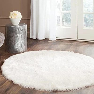 Safavieh Faux Sheepskin Rug for Living Room, Dining Bedroom Fur Collection, High Pile, in Ivory, 91 X cm