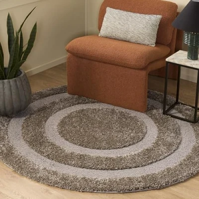 SAFAVIEH Florida Shag Collection 4' x Round Beige/Beige SG454 Border Non Shedding Living Room Bedroom Dining Entryway Plush 1.2 inch Thick Area Rug