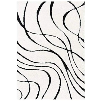 SAFAVIEH Florida Shag Collection Accent Rug 2'3" x 5', Ivory & Black, Non Shedding Easy Care, 1.2 inch Thick Ideal for High Traffic Areas in Entryway, Living Room, Bedroom (SG471 1290)
