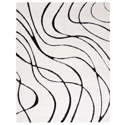 SAFAVIEH Florida Shag Collection Area Rug 8' x 10', Ivory & Black, Non Shedding Easy Care, 1.2 inch Thick Ideal for High Traffic Areas in Living Room, Bedroom (SG471 1290)