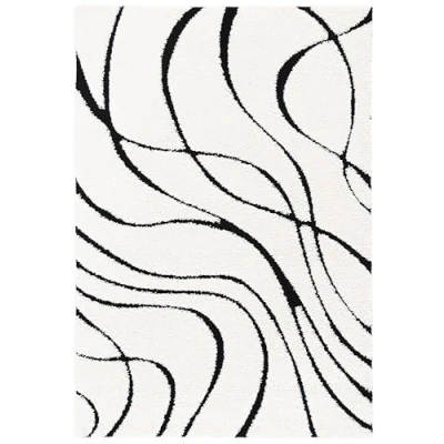 Safavieh Florida Shag Collection Shaggy Rug for Living Room Dining Bedroom High Pile Cream and Black 24 x 36 Inch