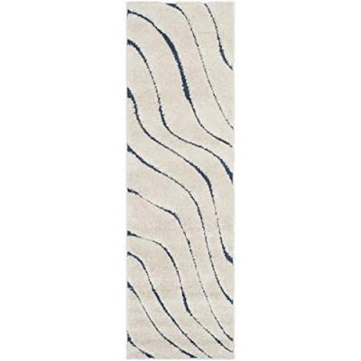 Safavieh Florida Shag Collection Shaggy Rug for Living Room Dining Bedroom High Pile Cream and Blue 69 x 152 cm