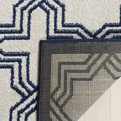 SAFAVIEH Geometric Rug for Indoor & Outdoor Amherst Collection, Short Pile, in Ivory and Navy color, 76 X 122 cm