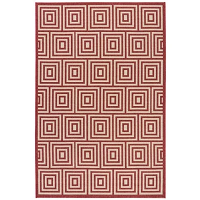 SAFAVIEH Geometric Rug for Indoor & Outdoor Beachhouse Collection, Short Pile, in Red and Creme color, 79 X 152 cm