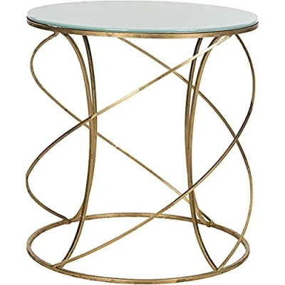 SAFAVIEH Glam Accent Table with Iron Legs, in Gold and Black, 51 X 53.84