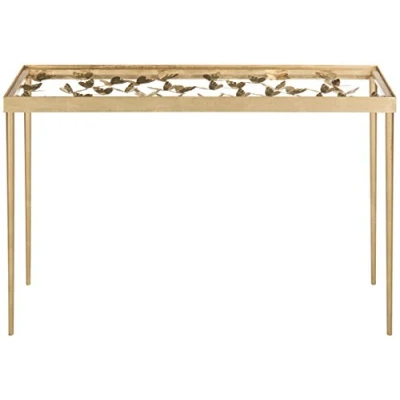SAFAVIEH Glam Accent Table with Iron Legs, in Gold and Clear, 51...