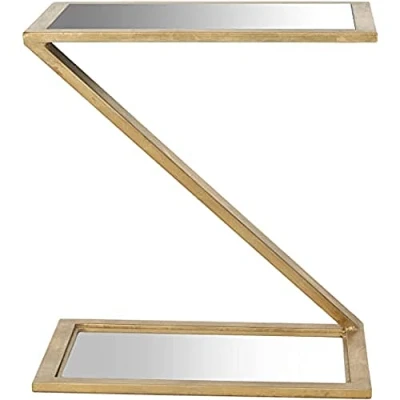 Safavieh Minimalist Accent Table. Perfect for the Living Room, Dining Room, Family Room, Den, Library or Study/Office. Color: Gold With Mirror Glass Top ; Product Dimensions: 50 X 34 X 54.61 cm Finish: Durable Iron With Gold Leaf Lacquer Coating Assembly Required: No ; Country of Origin: China Blot spills immediately. Maintain with regular dusting and wipe with mild soap and water, dry thoroughly and do not use brass cleaners or abrasive household chemicals to avoid damage to the finish. For a natural streak-free shine, use a soft lint-free cloth and a small amount of 1:1 ratio white vinegar and water to clean. Non-streaking glass cleaners may also be used.