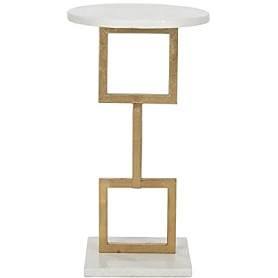 Safavieh Chic Accent Table. Perfect for the Living Room, Dining Room, Family Room, Den, Library or Study/Office. Color: Gold With White Marble Top ; Product Dimensions: 31 X 31 X 58.92 cm Finish: Durable Iron With Gold Leaf Lacquer Coating Assembly Required: No ; Country of Origin: China Blot up spills immediately, use coasters under beverages. Use trivets or mats under hot dishes or cookware. Clean with warm water and dry surface immediately after cleaning with a soft, clean absorbent cloth. Do not use abrasive cleaners that may contain acid such as bathroom cleaners, grout cleaner or tile cleaners. Maintain with regular dusting.
