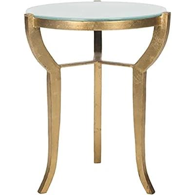 Safavieh Modern Accent Table. Perfect for the Living Room, Dining Room, Family Room, Den, Library or Study/Office. Color: Gold With White Glass Top ; Product Dimensions: 41 X 41 X 52.07 cm Finish: Durable Iron With Gold Leaf Lacquer Coating Assembly Required: No ; Country of Origin: China Blot spills immediately. Maintain with regular dusting and wipe with mild soap and water, dry thoroughly and do not use brass cleaners or abrasive household chemicals to avoid damage to the finish. For a natural streak-free shine, use a soft lint-free cloth and a small amount of 1:1 ratio white vinegar and water to clean. Non-streaking glass cleaners may also be used.