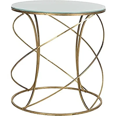 Safavieh Statement Accent Table. Perfect for the Living Room, Dining Room, Family Room, Den, Library or Study/Office. Color: Gold With White Glass Top ; Product Dimensions: 50 X 50 X 53.84 cm Finish: Durable Iron With Gold Leaf Lacquer Coating Assembly Required: No ; Country of Origin: China Blot spills immediately. Maintain with regular dusting and wipe with mild soap and water, dry thoroughly and do not use brass cleaners or abrasive household chemicals to avoid damage to the finish. For a natural streak-free shine, use a soft lint-free cloth and a small amount of 1:1 ratio white vinegar and water to clean. Non-streaking glass cleaners may also be used.
