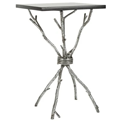 Safavieh Modern Accent Table. Perfect for the Living Room, Dining Room, Family Room, Den, Library or Study/Office. Color: Silver / Black ; Product Dimensions: 35 X 35 X 55.88 cm Finish: Durable Iron With Silver Leaf Lacquer Coating Assembly Required: No ; Country of Origin: China Blot up spills immediately, use coasters under beverages. Use trivets or mats under hot dishes or cookware. Clean with warm water and dry surface immediately after cleaning with a soft, clean absorbent cloth. Do not use abrasive cleaners that may contain acid such as bathroom cleaners, grout cleaner or tile cleaners. Maintain with regular dusting.